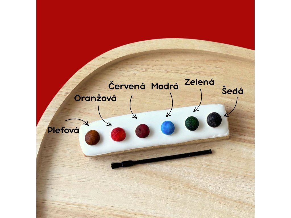 Barvičky na paletce jsou speciální potravinářské gelové barvy a kreslí se s nimi stejně, jako třeba s vodovými barvami. Stačí jen namočit štěteček do trochy vody, nabrat na štětec vybranou barvu a malovat. Mezi barvami nezapomeňte štěteček propláchnout v čisté vodě. Nebojte se na první pohled tmavých odstínů, paletky jsou tvořeny přímo ke konkrétnímu obrázku, takže budete mít všechny barvy, které potřebujete. Pro dokonalý výsledek si je můžete vyzkoušet třeba na okraj obrázku, odstín konkrétní barvičky může překvapit 😊