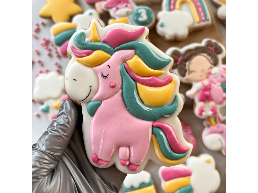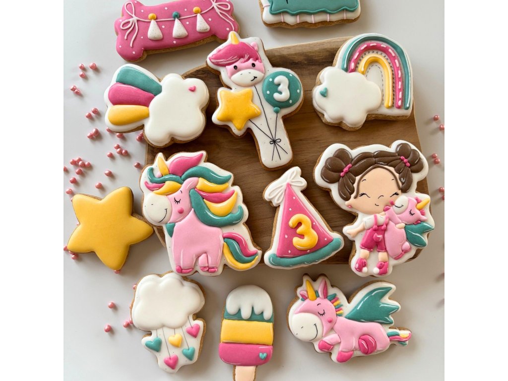 Proměňte dětskou oslavu v kouzelný pohádkový svět s originální sadou deseti ručně zdobených perníčků s motivem roztomilého jednorožce (design SCG). V této sadě najdete libovolný počet k sobě laděných upomínkových perníčků 🌈