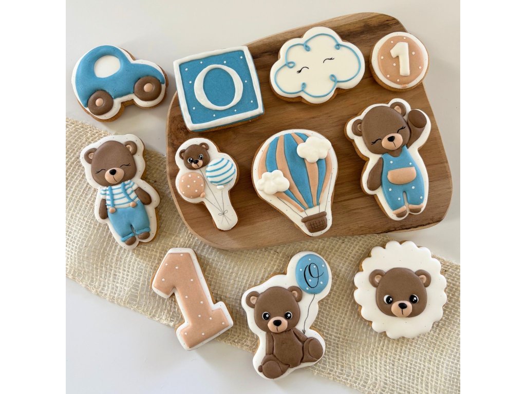 Vdechněte své oslavě ještě tématičtějšího ducha s originální sadou deseti ručně zdobených perníkových kousků s motivem roztomilého medvědího chlapečka (design SCG). V této sadě najdete 10 kusů k sobě laděných upomínkových perníčků 🎈