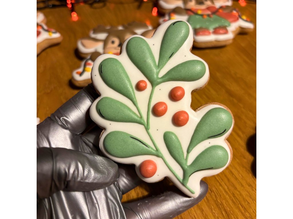 Malý symbol štěstí ukrytý v perníčku. Ručně zdobený perníček ve tvaru jmelí přináší do vánoční kolekce klid, pohodu a sváteční kouzlo. Jemné listy a bobulky jsou zdobeny královskou glazurou s důrazem na detail, díky čemuž perníček působí elegantně a zároveň hravě.
